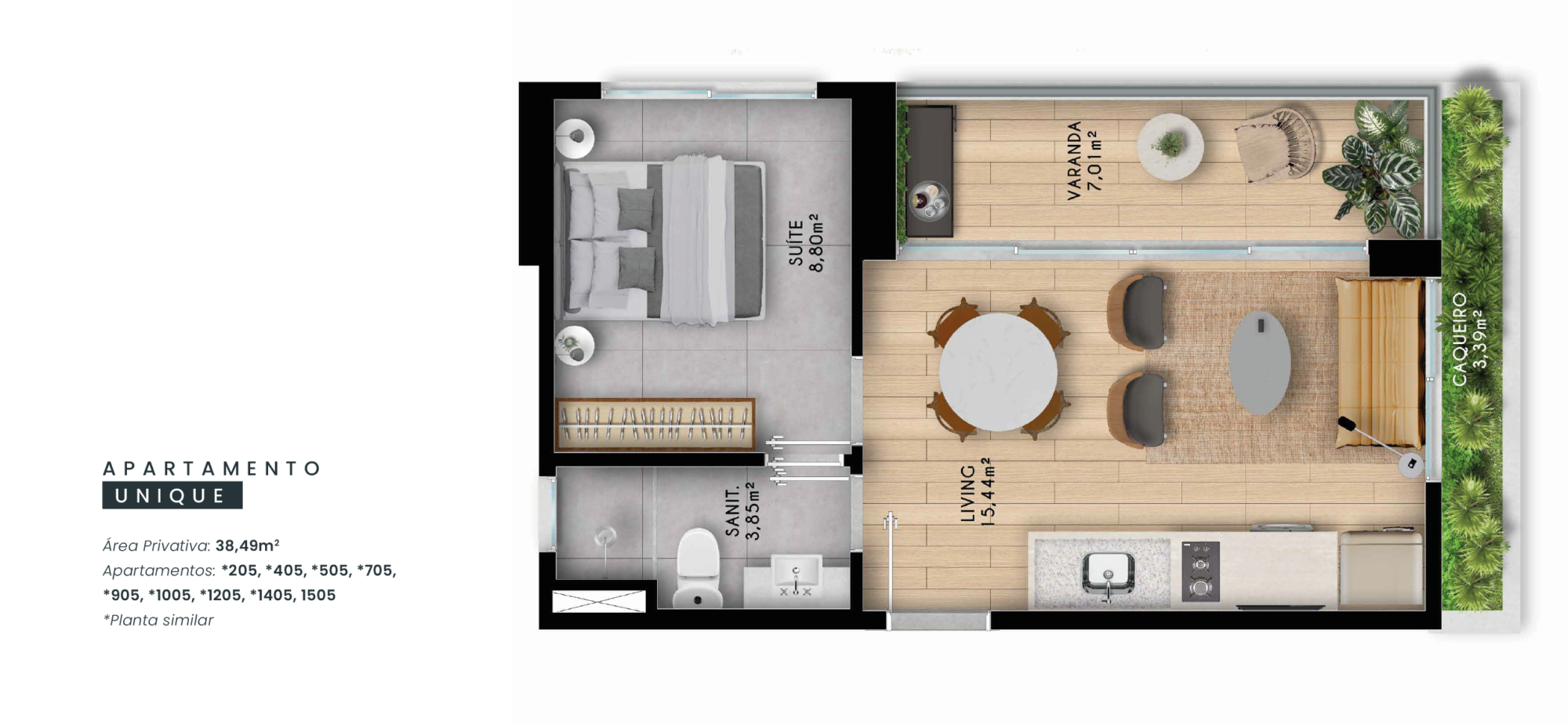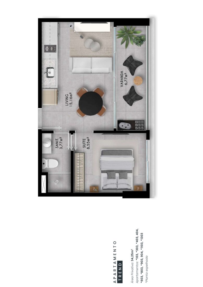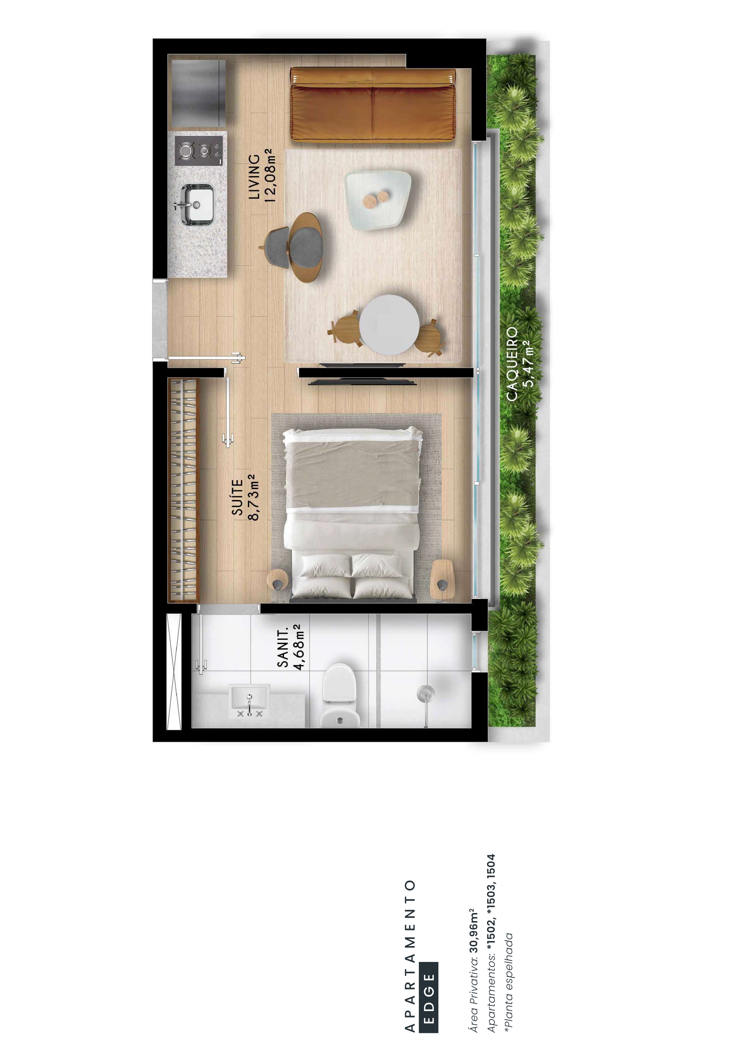 Apartamentos de quarto e sala com varanda Wide Line a partir de 30,96m²