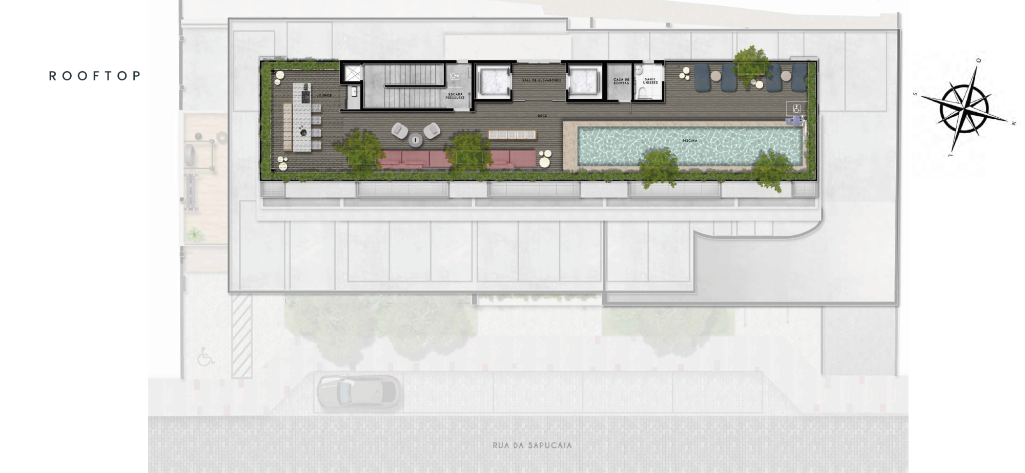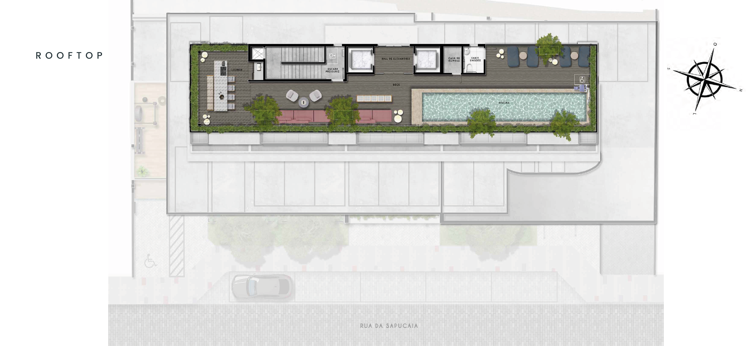 Lojas comerciais, Rooftop, Piscina, Fitness, Coworking, Lobby e Laundry.