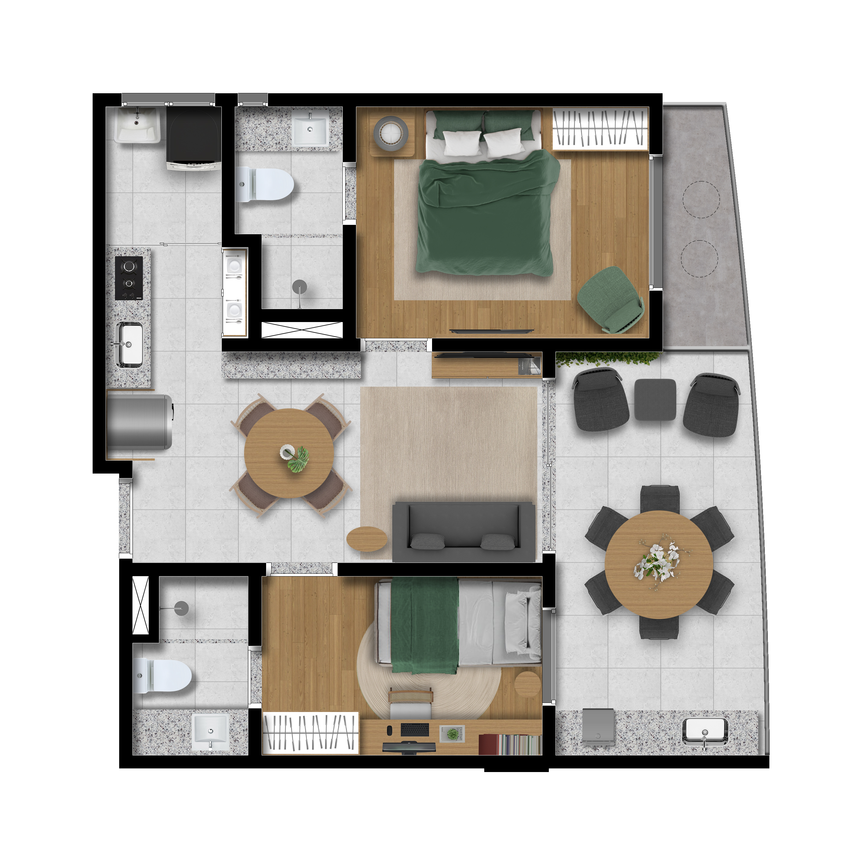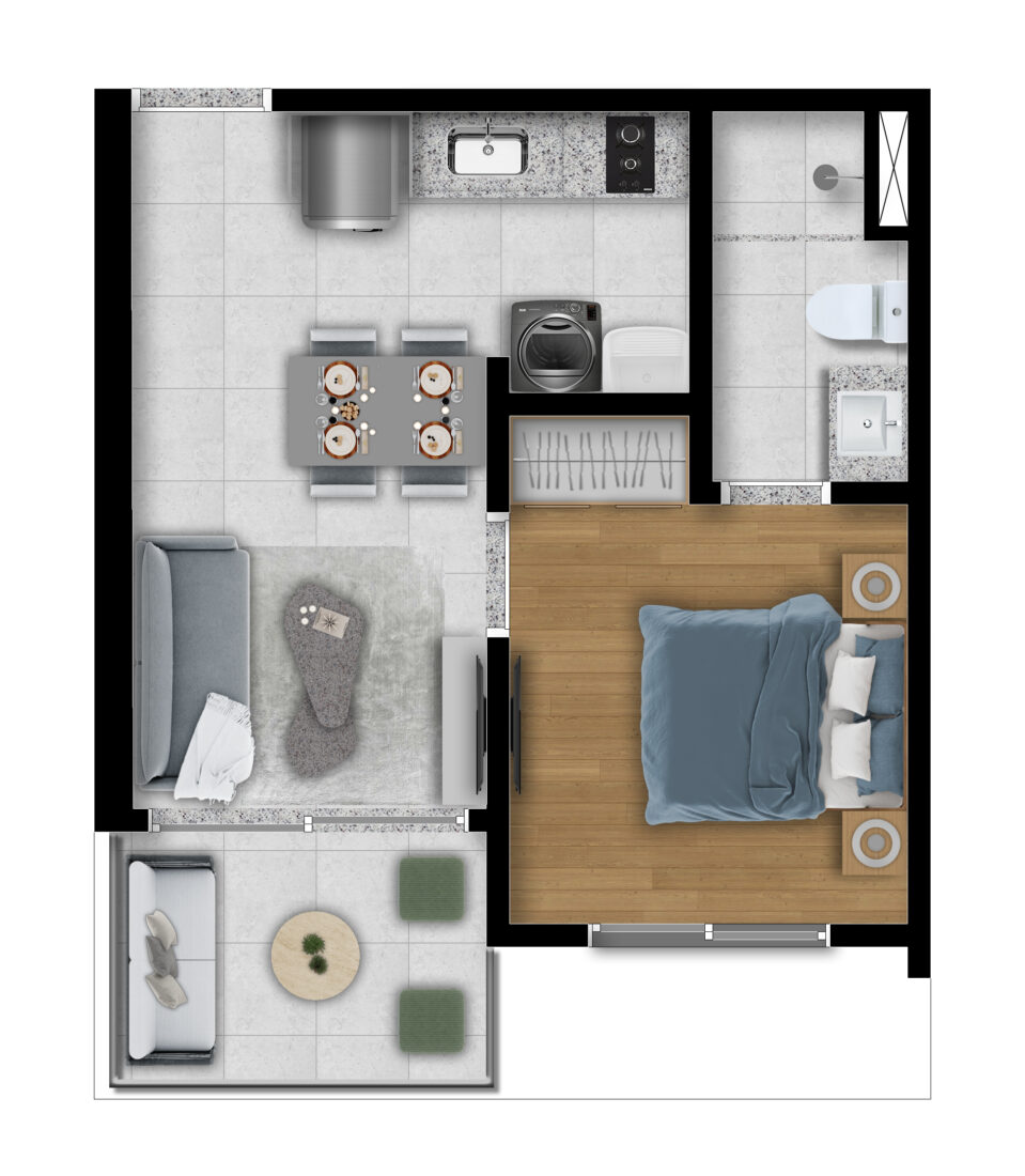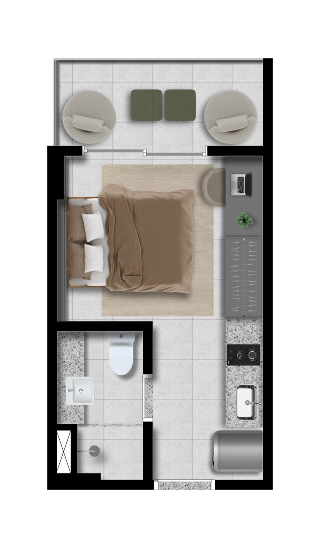 Studios/ Quarto e Sala/ 2 Quartos/ 2 Suítes/ Lojas Bossa Mall