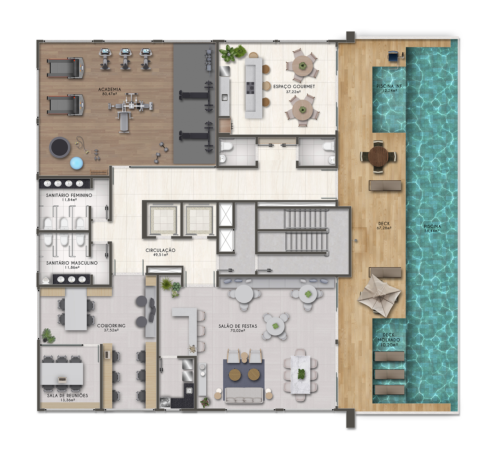 Piscina no rooftop, academia, bicicletário, Espaço Gourmet, Pet Place, Pranchari