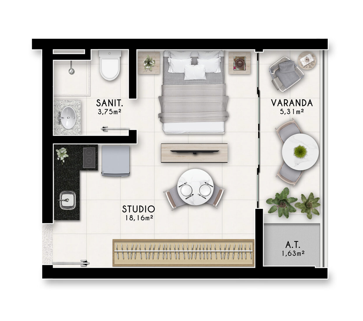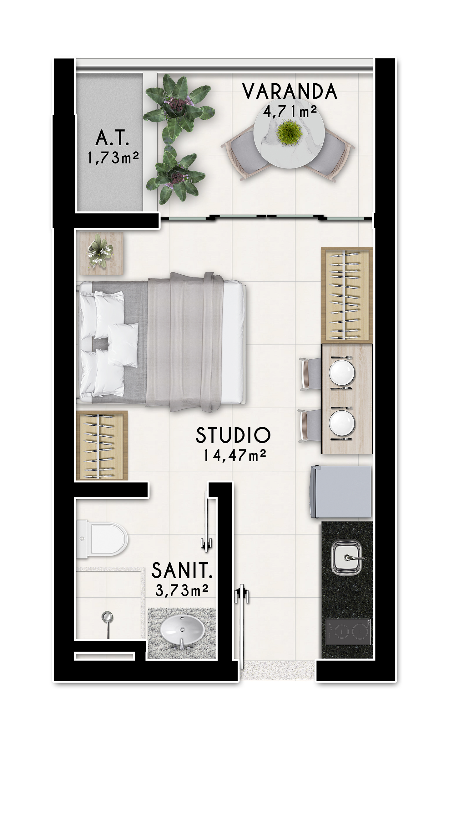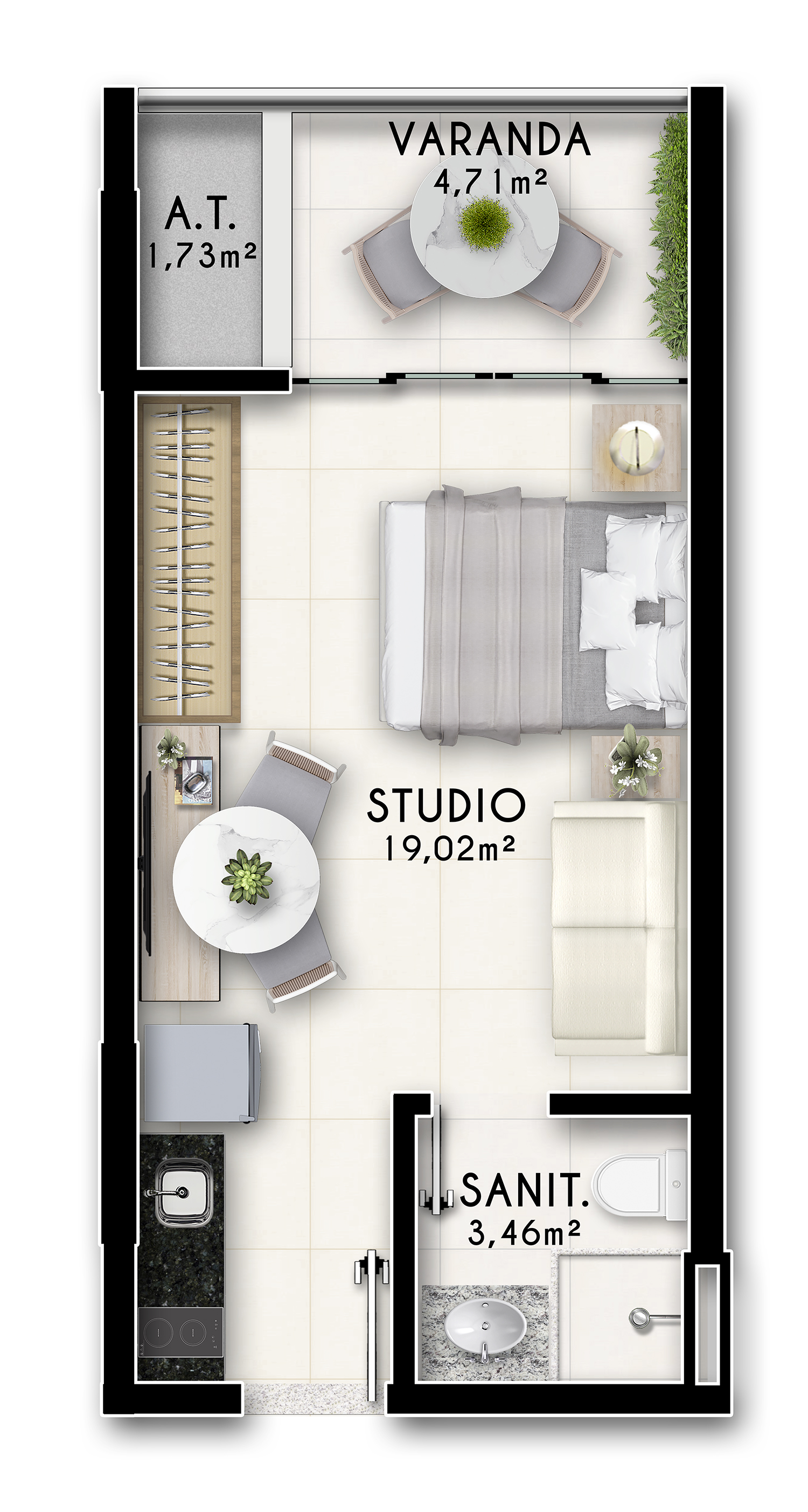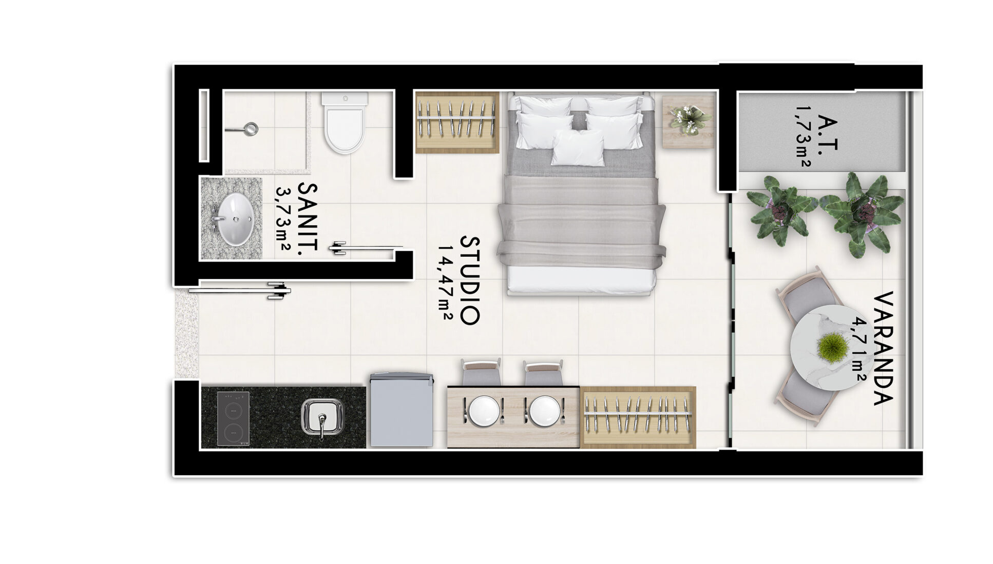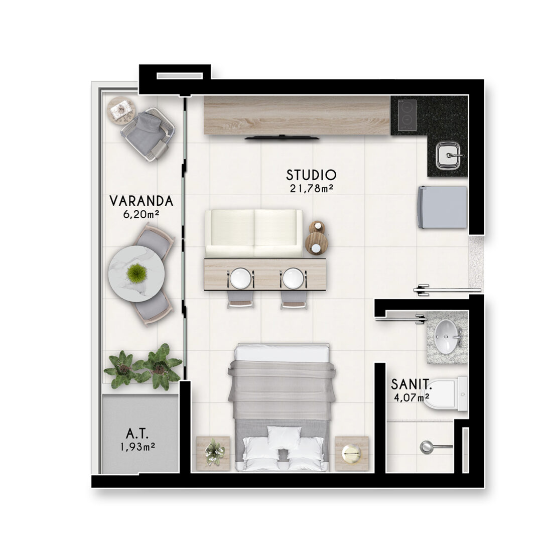 Apartamentos studios a partir de 28m² com infraestrutura completa no melhor de Pedra do Sal. Um empreendimento pronto para morar.