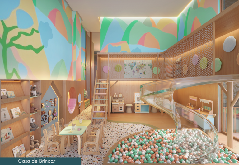 Pensado para a família, o projeto reúne conforto, lazer, qualidade de vida, natureza e uma vista diferenciada. Com arquitetura biofílica e áreas de convivência que estimulam brincadeiras sensoriais, educativas e o contato com o ambiente natural, o Lodge valoriza o desenvolvimento das crianças e cria um lugar onde viver bem é simplesmente natural.