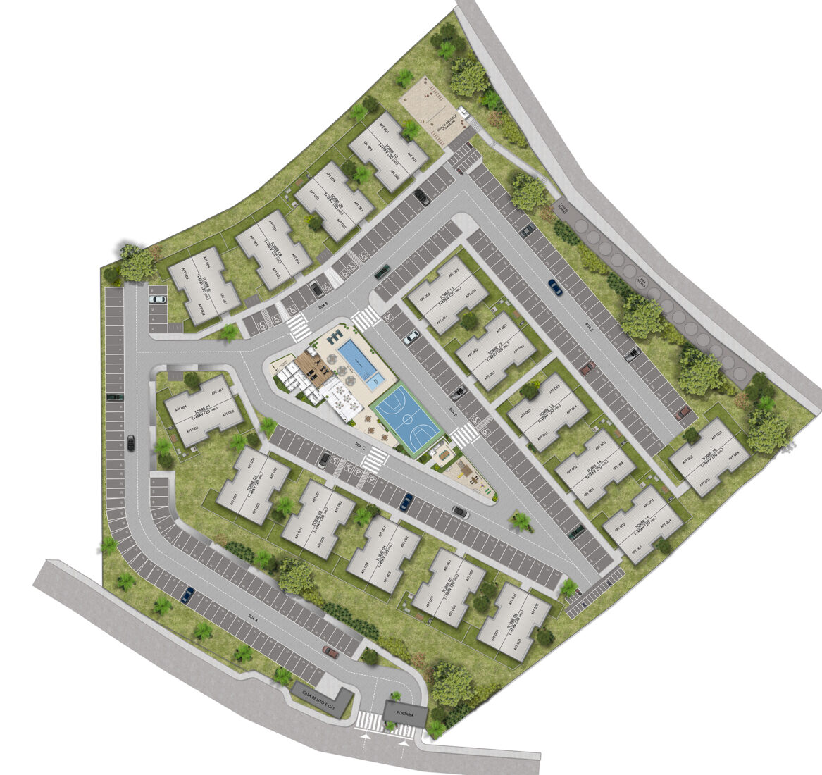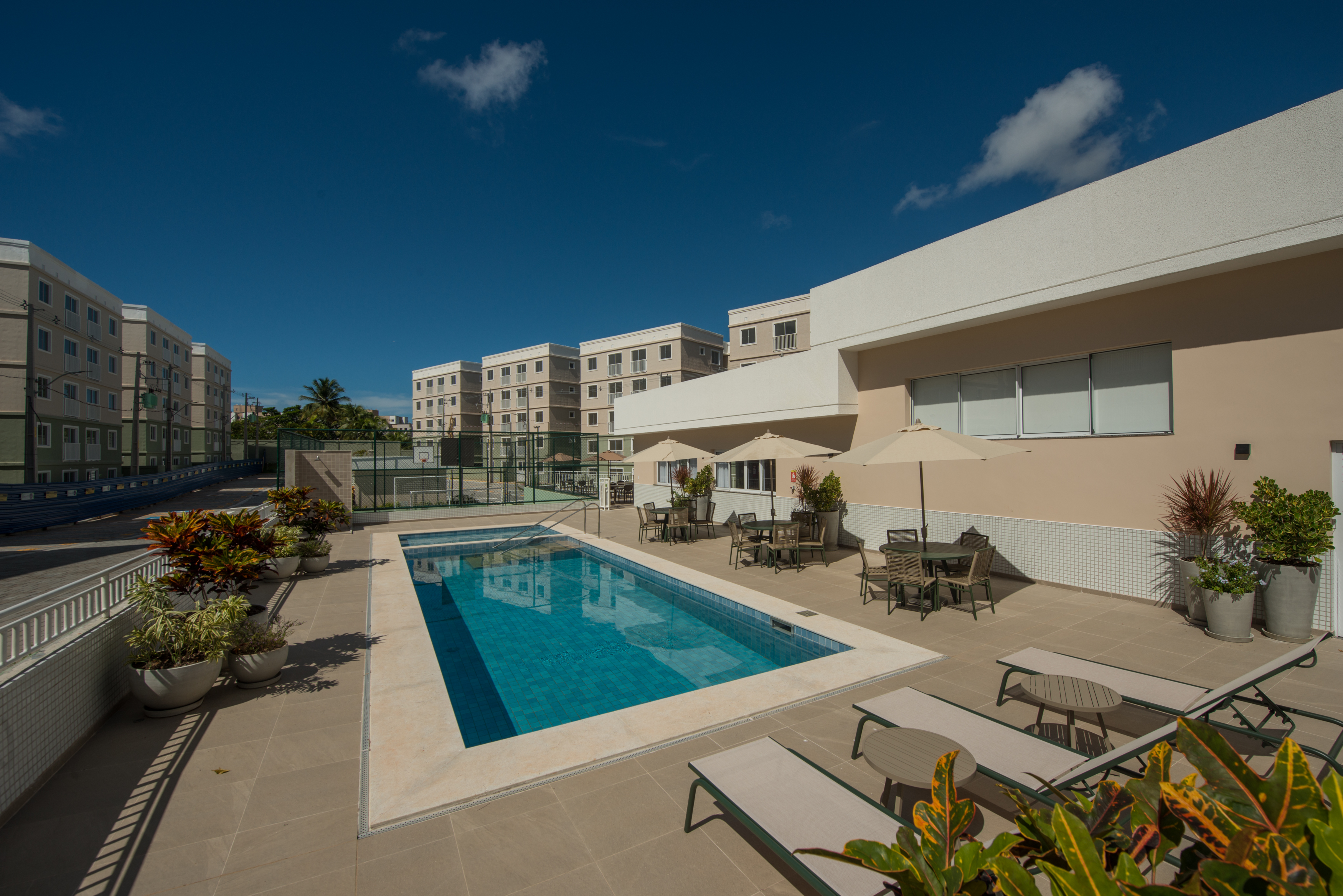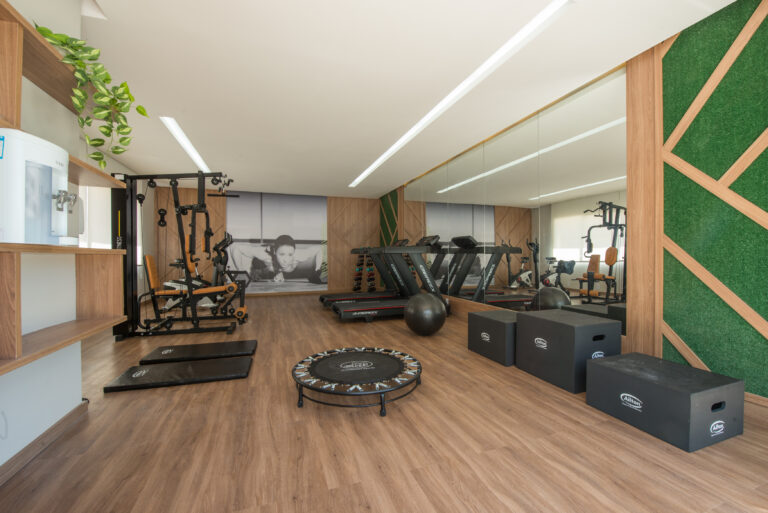 Piscina, academia, parque infantil, espaço de jogos, quadra poliesportiva