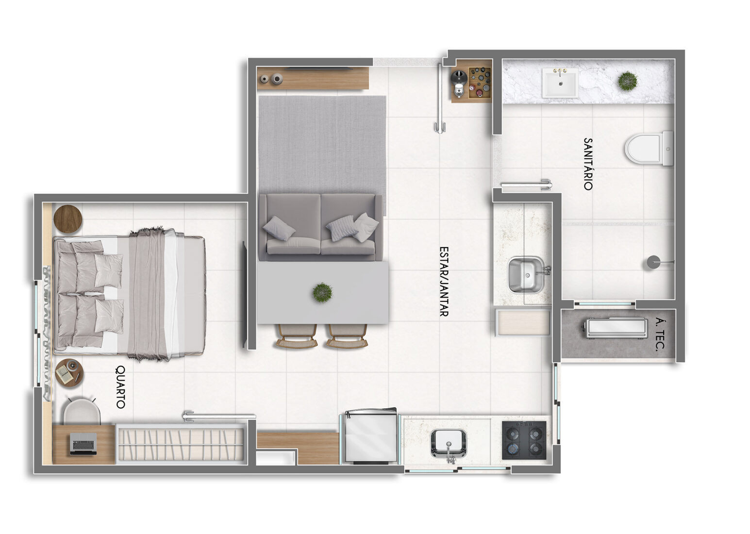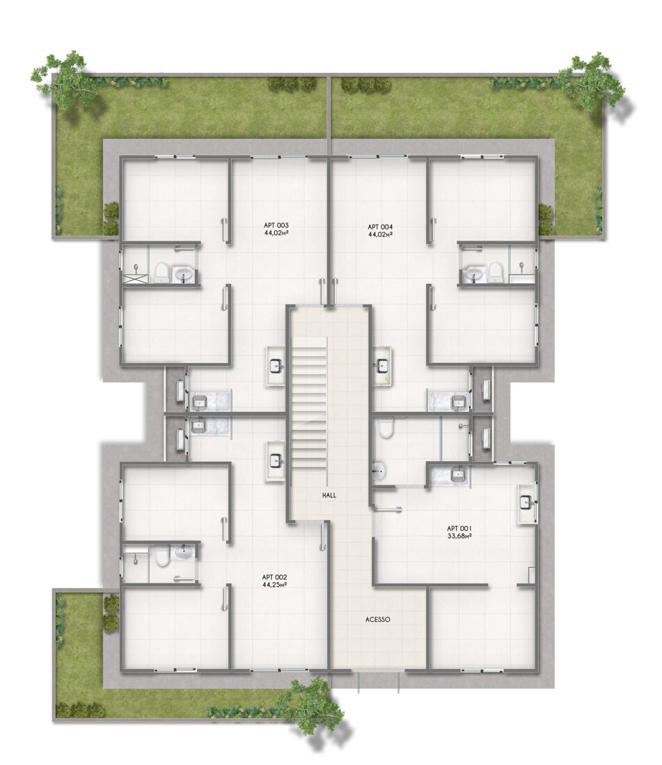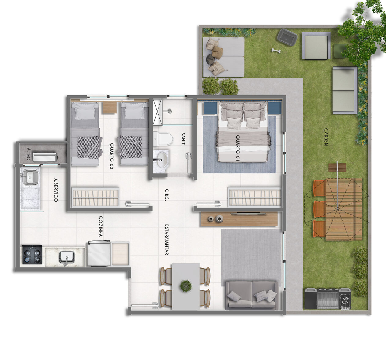 Apartamentos de quarto e sala, 2 quartos, e garden