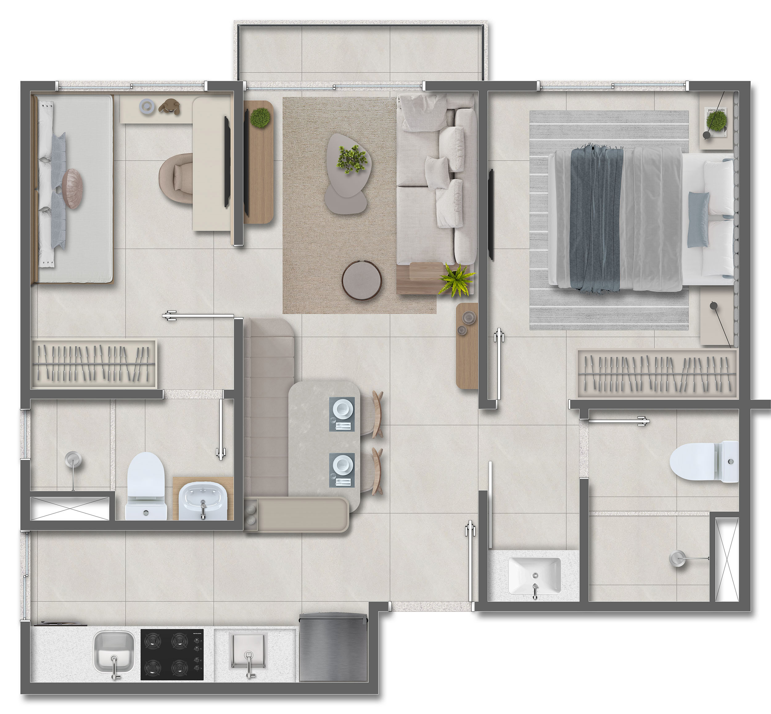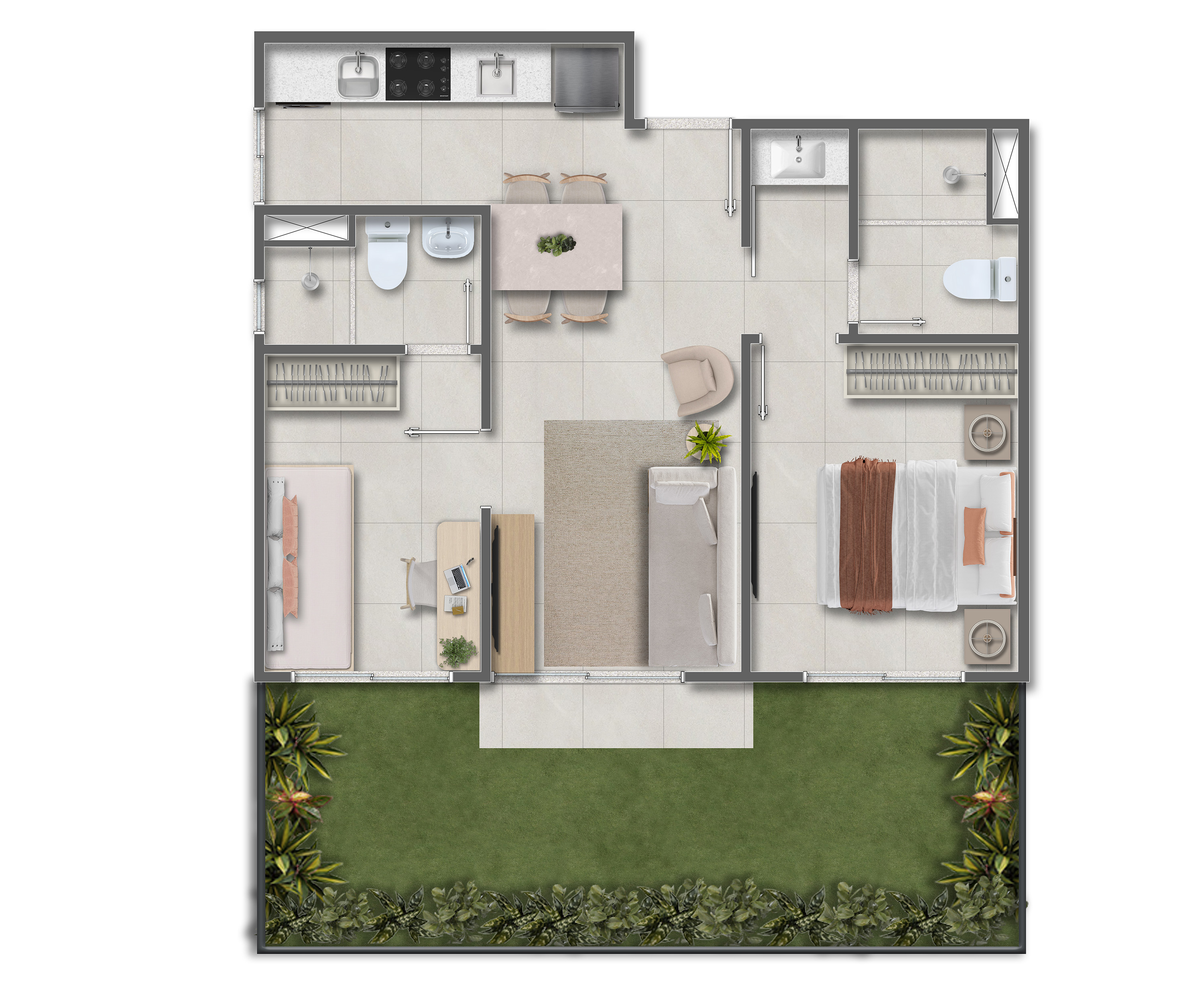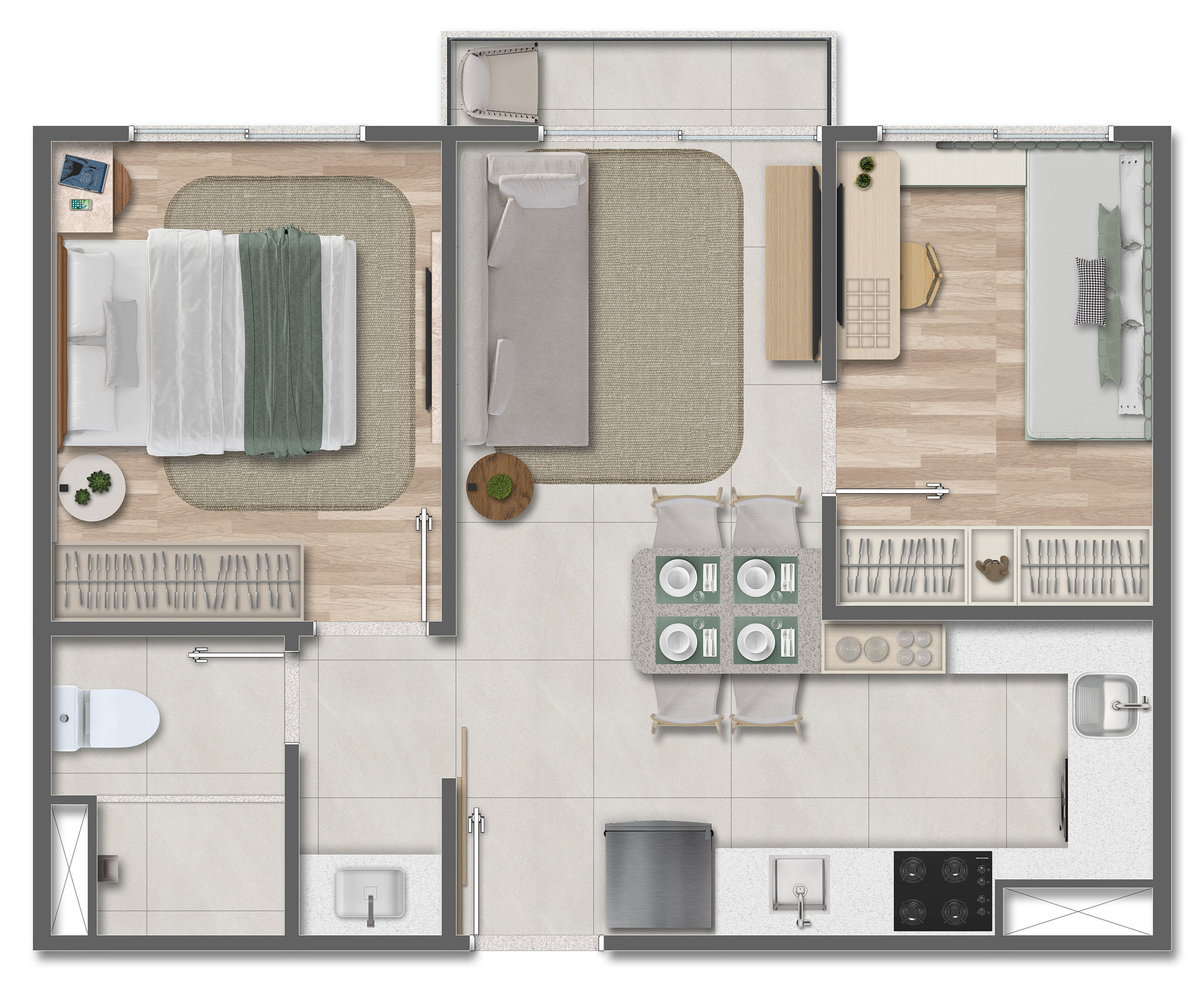 No Vivai São Rafael, você encontra dois quartos com 2 suítes, varanda e cozinha integrada, projetado para oferecer funcionalidade e aconchego no seu dia a dia.