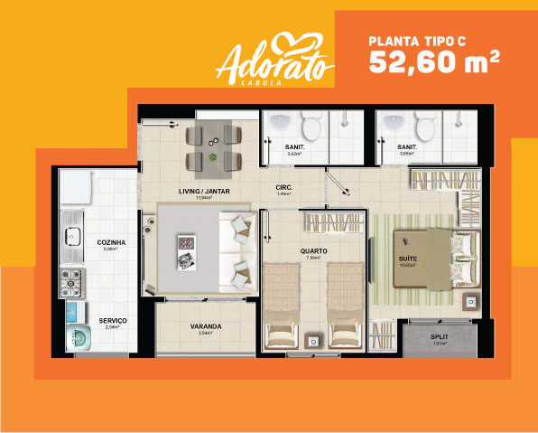 Com 2 e 3 quartos de 49 a 60m², o Adorato é incrível, porque foi pensado em você, da planta ao acabamento. Tem uma ótima localização e acessibilidade para os portadores de necessidades especiais em todas as áreas comuns do empreendimento. Aqui, sua família vai poder vivenciar um cotidiano de conforto, segurança e bem-estar, amparada por uma infraestrutura completa. Pode apostar, você vai adorar viver aqui!