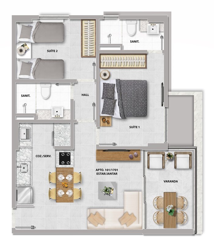 - Duas Suítes de 59 m2 de conforto, idealizado especialmente para você - Últimas unidades disponíveis!