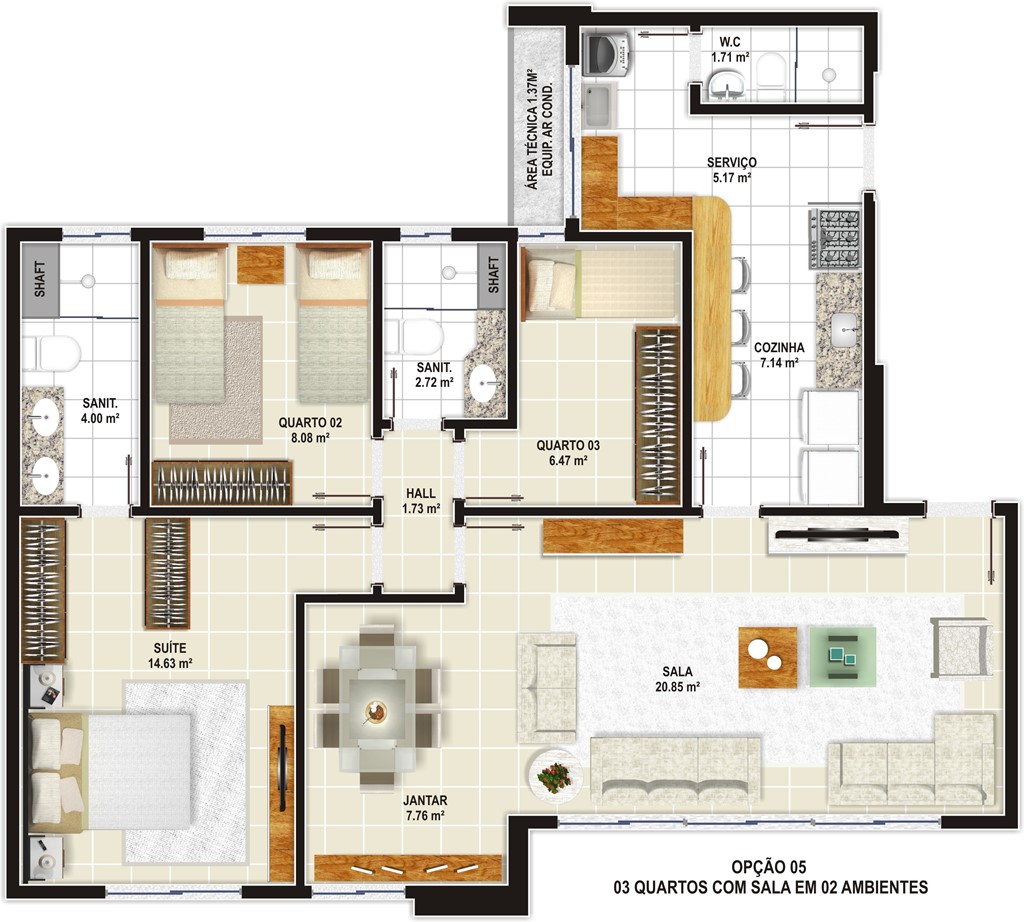 • 04 opções de plantas com 03 ou 04 quartos, 2 unidades por andar.